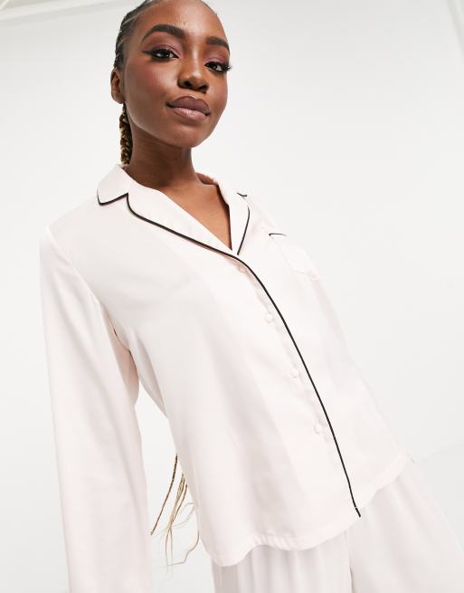 ASOS DESIGN Tall satin long sleeve shirt trouser pyjama set in