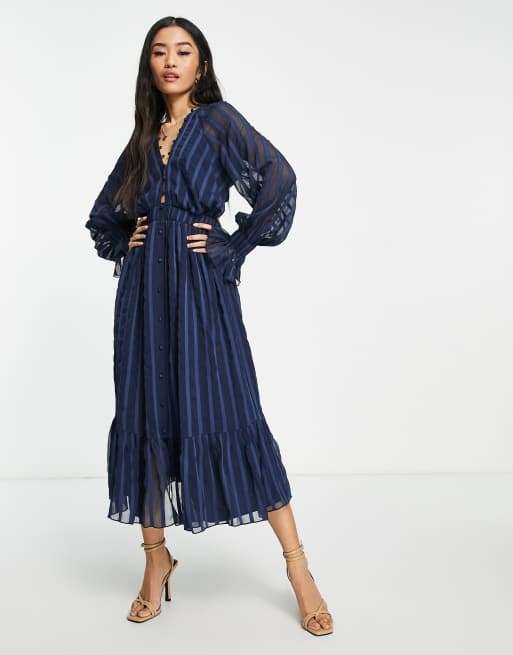 ASOS DESIGN Robe mi longue ray e en satin avec manches blouson et boutons Bleu marine
