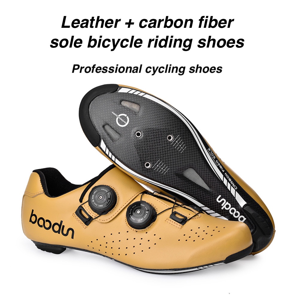 BOODUN Genuine Leather Carbon Fiber Road Bike Riding Lock Shoes