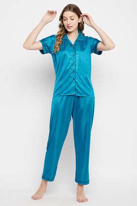 Teal Blue Satin Night Suit For Women The Feel Good Studio