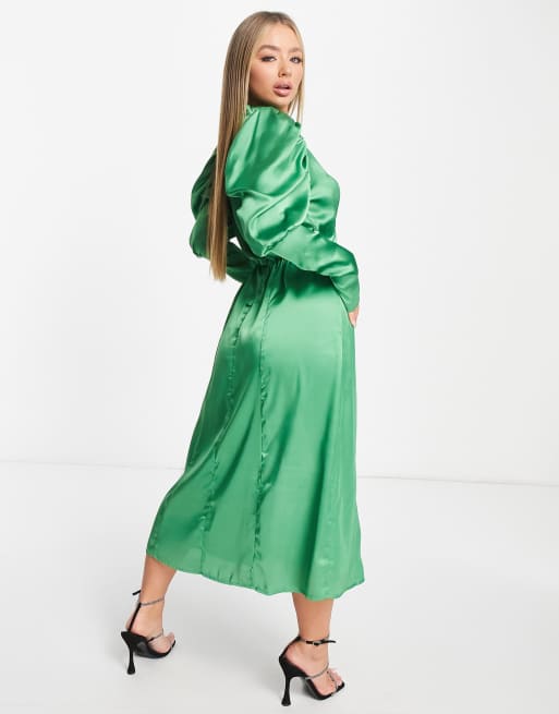 AX Paris Robe mi longue fendue col montant en satin Vert ASOS