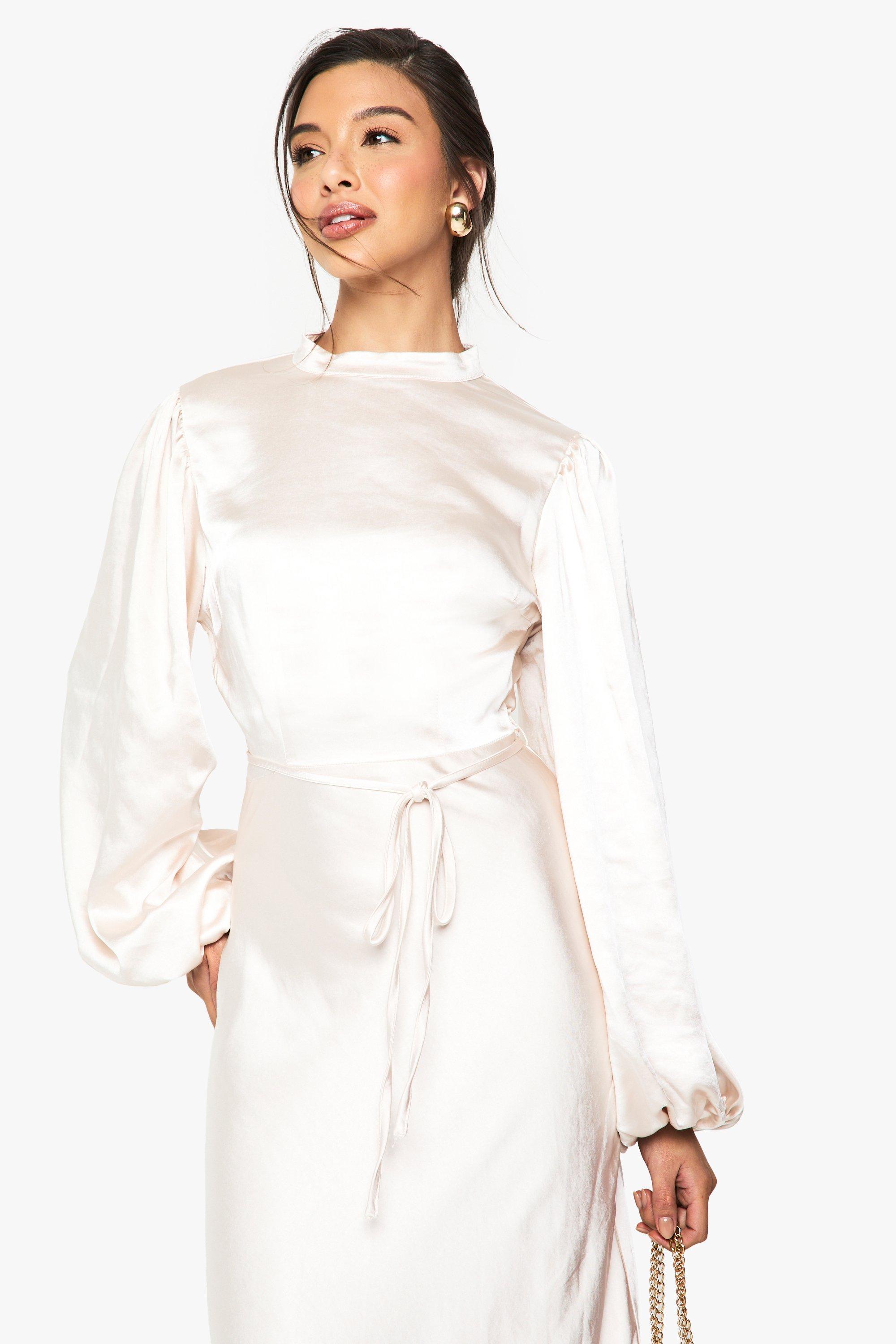 Robe satin outlet col montant, Golden Girl Robe mi longue vas e en satin champagne asym trique outlet