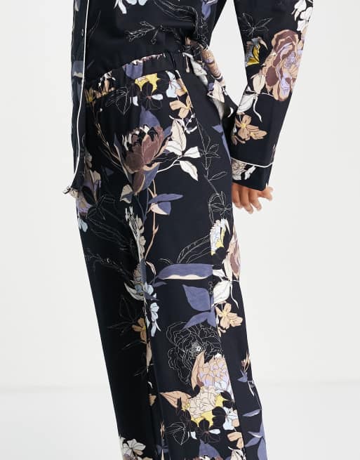 Lindex viscose jersey revere pajama set in navy floral print ASOS