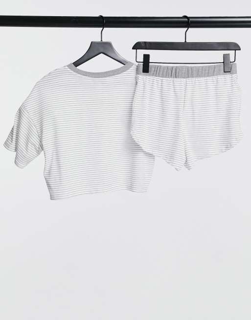 Topshop dinosaur embroidered pajama set in white stripe