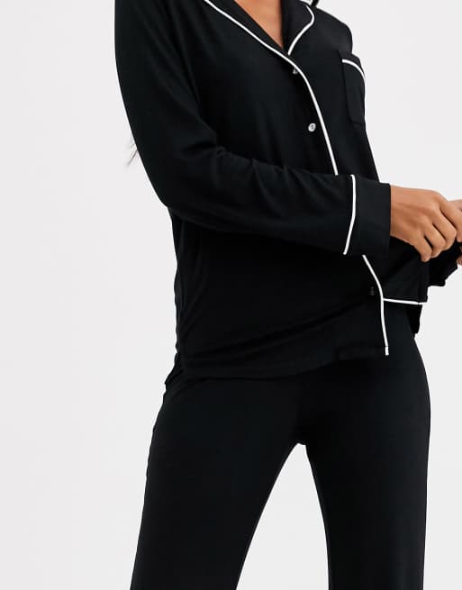 ASOS DESIGN Maternity viscose long sleeve shirt pants pajama set with contrast piping in black