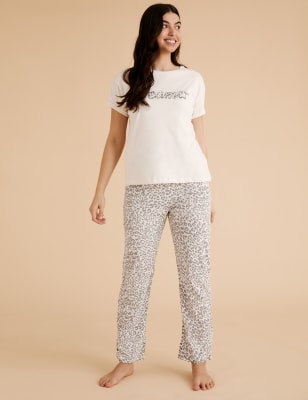 Pure Cotton Animal Print Pyjama Set M S Collection M S