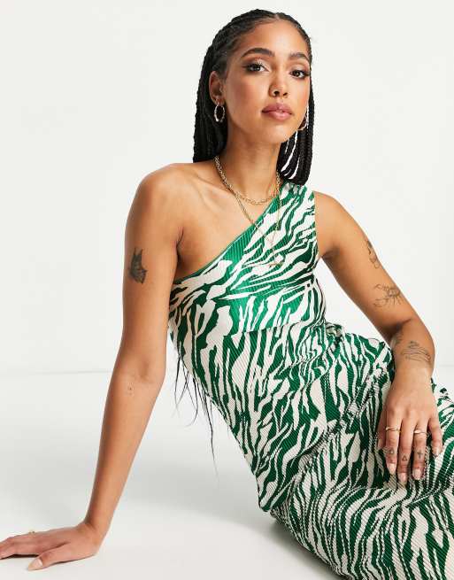 ASOS DESIGN Robe mi longue pliss e asym trique imprim z bre Vert et cr me