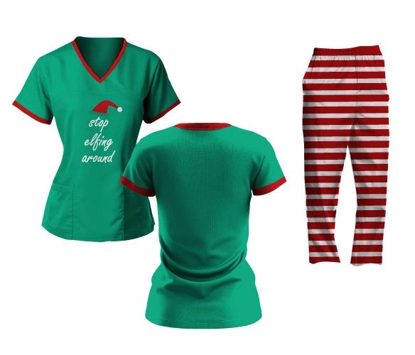 SCRUB SET TOP AND PANT STOP ELFING AROUND
