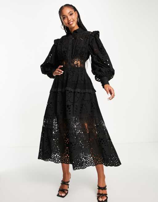 Asos outlet broderie anglaise, ASOS EDITION broderie midi dress with balloon sleeves outlet