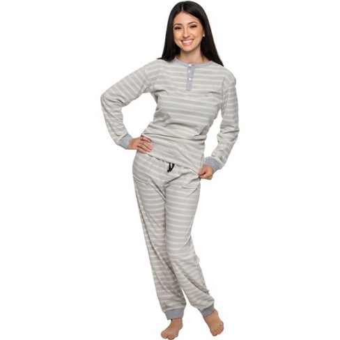Silver Lilly Women s 2 Piece Fleece Striped Pajama Set