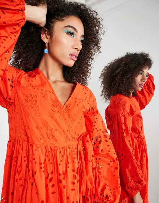 ASOS EDITION wrap smock broderie midi dress in tomato red