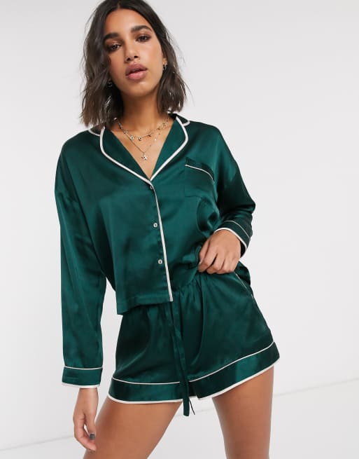 Dark green outlet satin pyjamas, Stylish Silk Pajama Set for Women 100 Pure Silk outlet