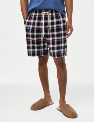 M and s outlet mens pyjama shorts, Pure Cotton Checked Loungewear Shorts M S US outlet