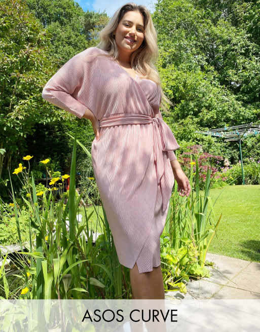 Asos robe outlet cache coeur, ASOS DESIGN Curve Robe cache c ur mi longue pliss e avec manches chauve souris et ceinture nouer Rose Exclusivit ASOS outlet