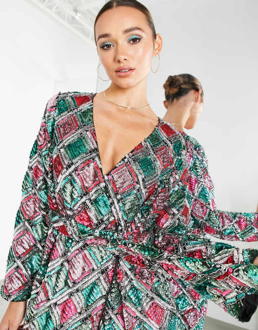 ASOS EDITION Robe cache c ur mi longue losanges avec ceinture et sequins
