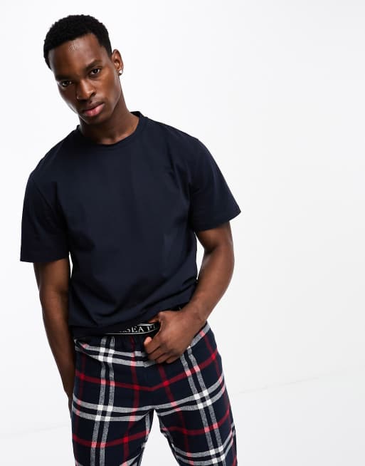 Chelsea Peers red check t shirt and pants pajama set in navy and