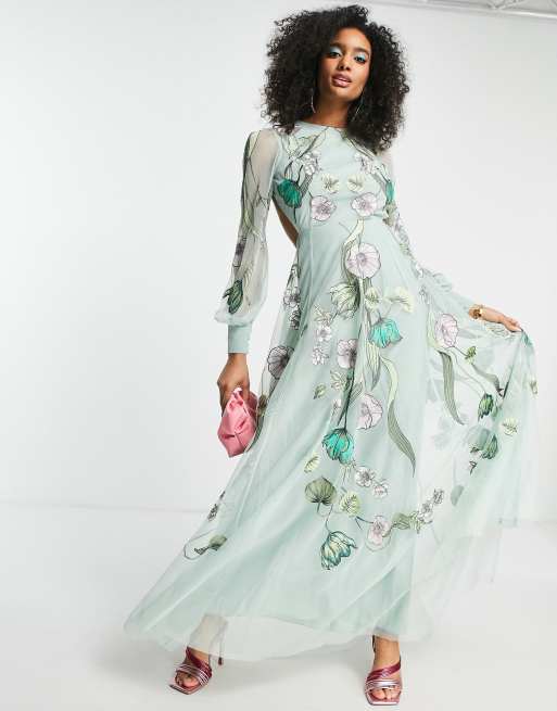 ASOS EDITION Robe longue fleurs brod es et imprim art nouveau Vert