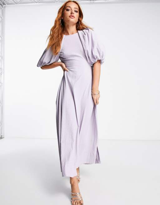 ASOS DESIGN Robe longue textur e manches bouffantes et dos ouvert Lilas