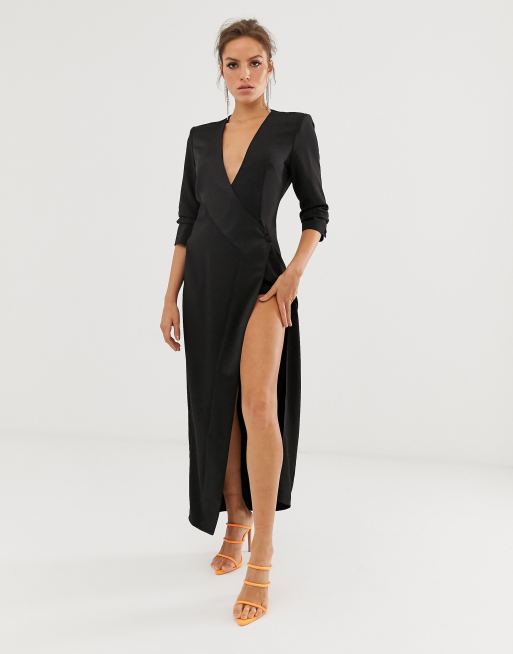Asos outlet robe smoking, ASOS DESIGN Robe portefeuille mi longue style smoking paulettes Noir outlet
