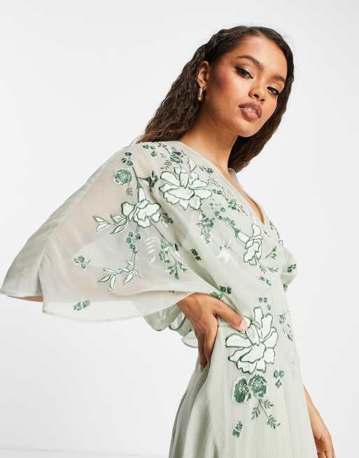 ASOS DESIGN Robe mi longue manches kimono effet cape et sequins parpill s