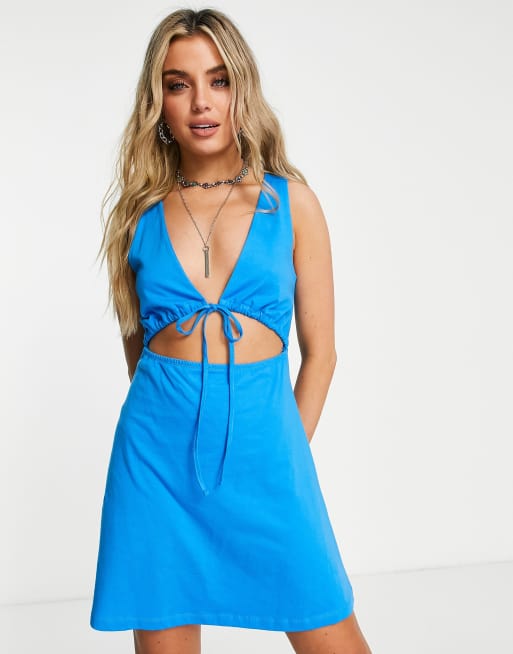 ASOS DESIGN Robe courte col V et d coupe avec liens Bleu vif