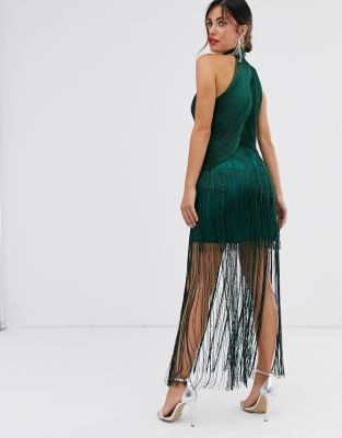 ASOS DESIGN Robe cache c ur longue drap e franges Vert