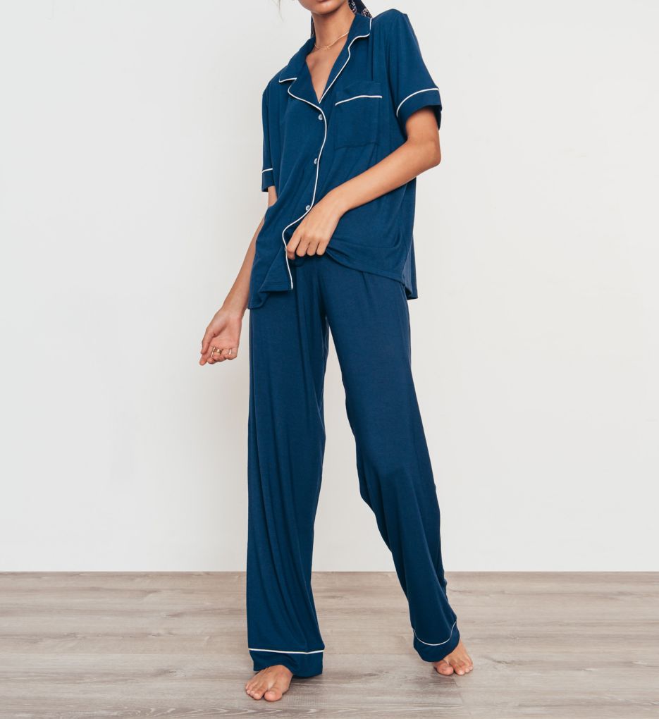 Gisele Short Sleeve and Pant PJ Set Navy Ivory L by Eberjey