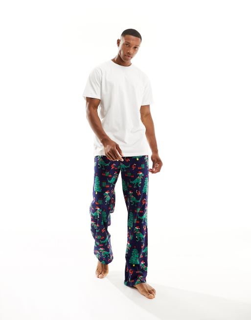ASOS DESIGN pajama set with Christmas dinosaur print in navy ASOS