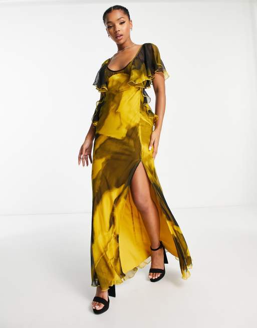 Robe a outlet volant superposé, ASOS DESIGN Robe longue volants superpos s et dos ouvert avec outlet
