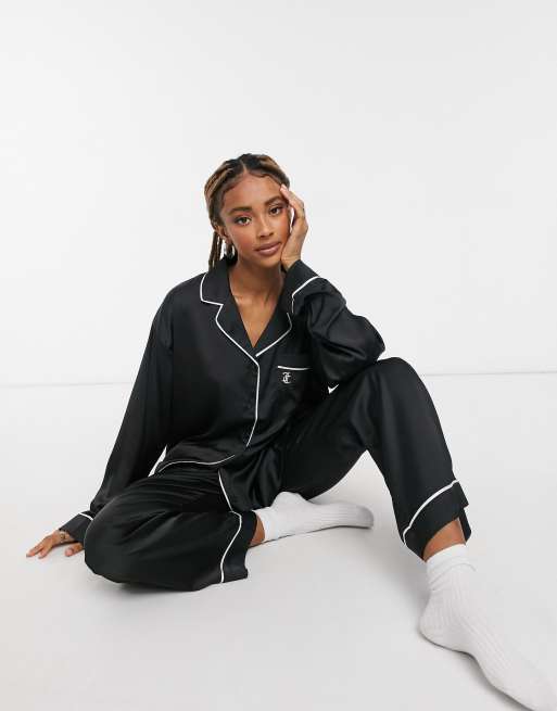 Juicy Couture satin pajama shirt in black