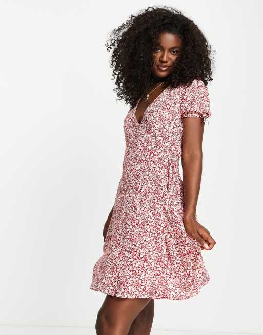 Pimkie Robe courte cache c ur fleurs avec manches courtes