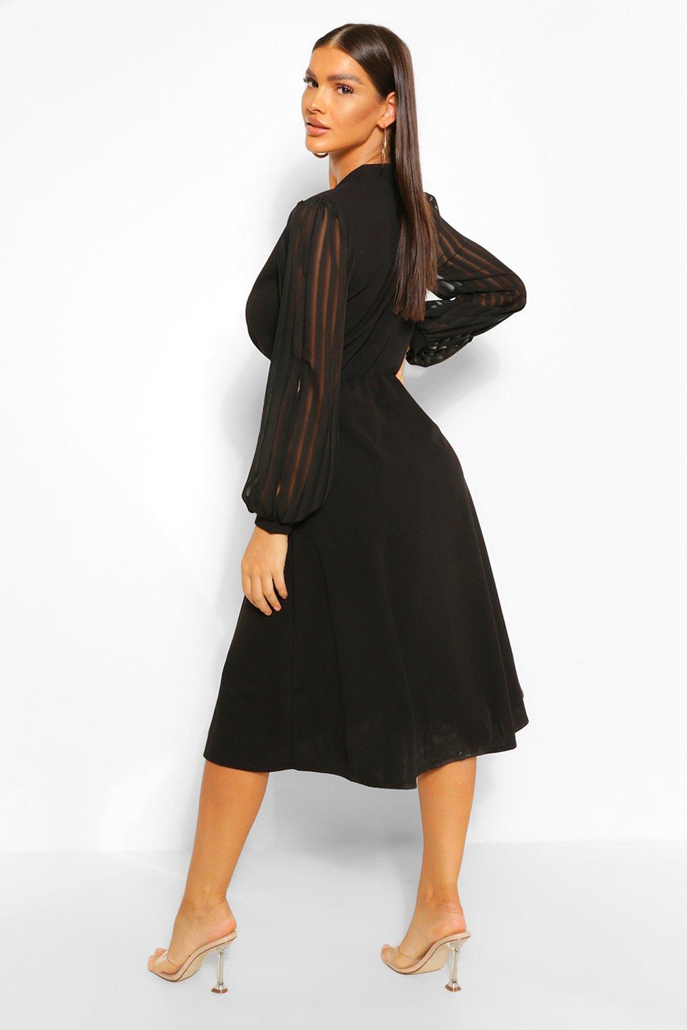 Robe moulante mi longue cache c ur rayures en mousseline de soie