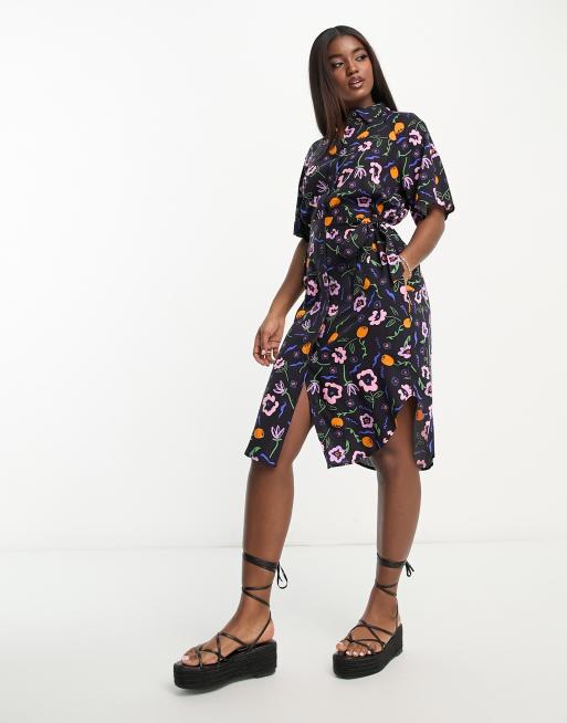 Monki outlet robe chemise, Robe chemise avec ceinture nou e la taille et imprim chats outlet