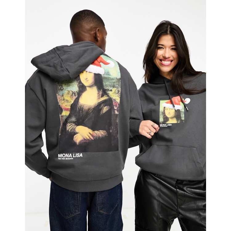 ASOS DESIGN unisex oversized Christmas hoodie in charcoal with