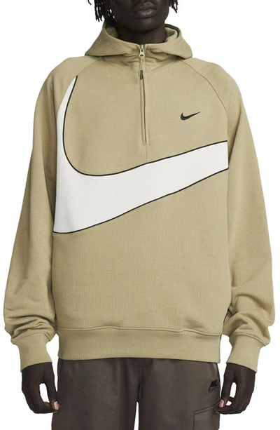 Nike Men s Swoosh 1 2 zip Fleece Hoodie In Neutral Olive light