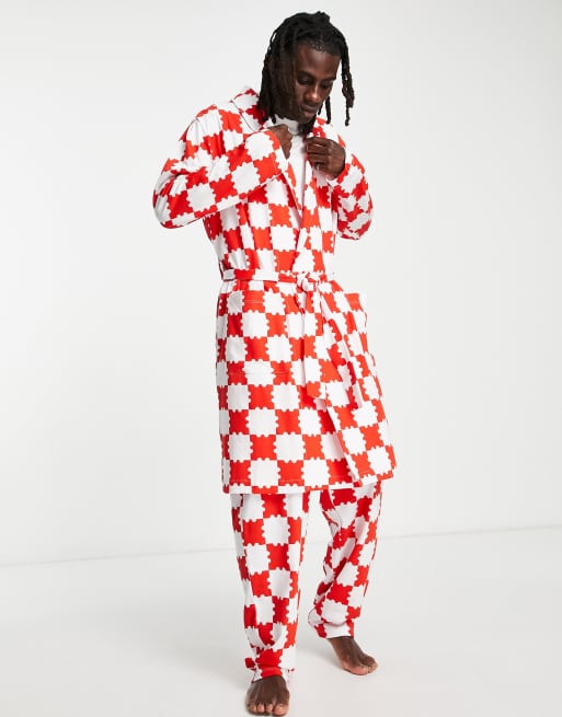 ASOS DESIGN Peignoir d ensemble imprim carreaux Rouge ASOS