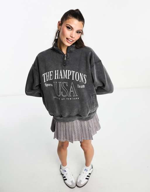 Bershka outlet oversize sweatshirt, Bershka Hamptons 1 4 zip oversized sweatshirt in gray ASOS outlet