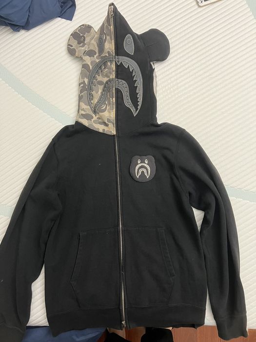 BAPE Shark Bear Full Zip Hoodie M Medicom Toy Hoodie Black Silver