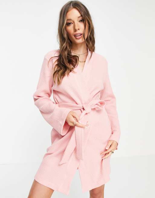 ASOS DESIGN Robe de chambre courte en tissu gaufr Rose ASOS