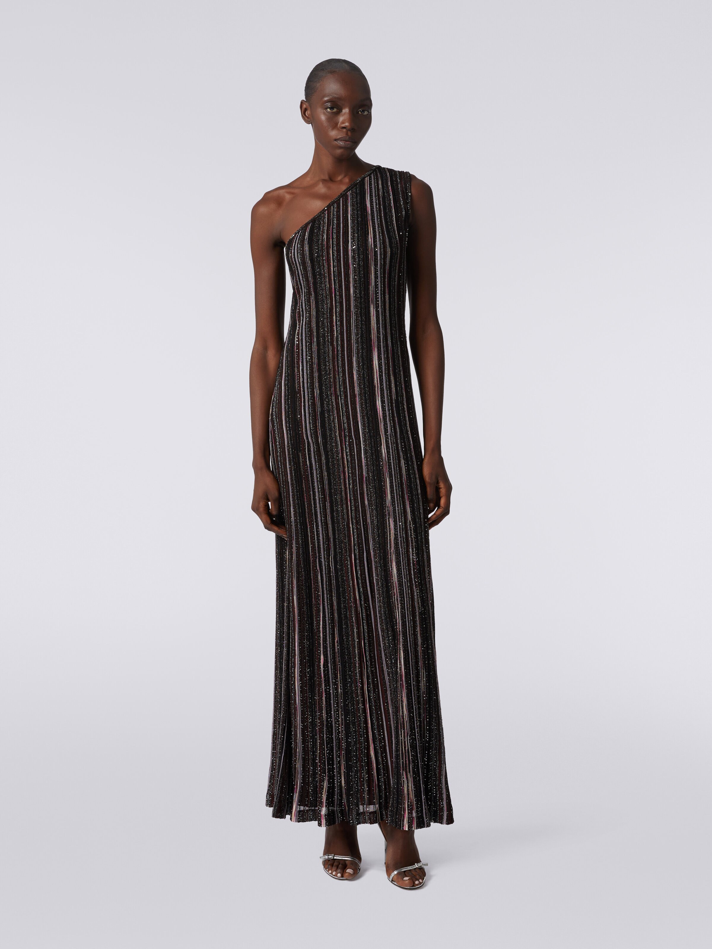 Robe longue outlet une epaule, Robe longue paule nue et rayures verticales en viscose m lang e outlet