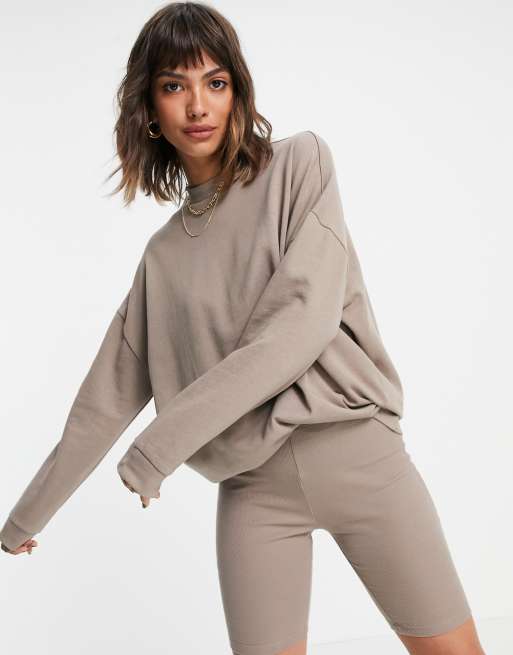 ASOS DESIGN tracksuit oversized sweatshirt ribbed legging short in mushroom