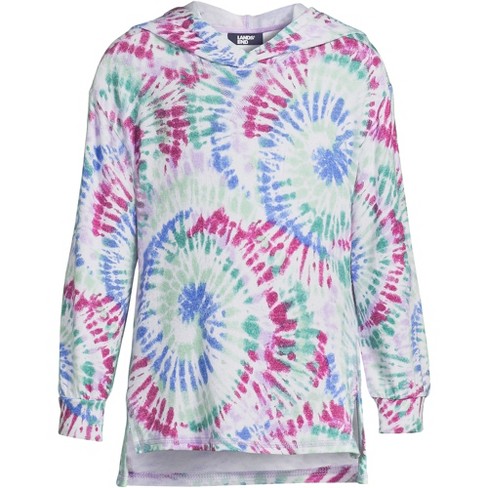 Lands End Kids Long Sleeve Hooded Cozy Top Medium Teal Shadow
