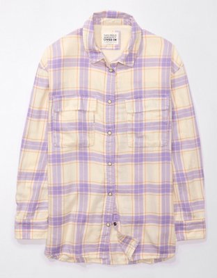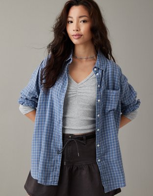 AE Oversized Long Sleeve Plaid Button Up Shirt