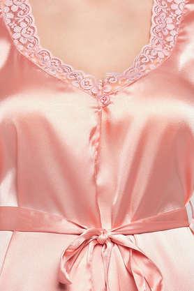 Amelie Nude Pink Satin Bridesmaid Robe with Lace Trim