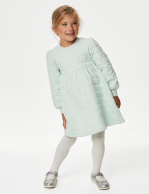 Robe ouatin e en coton motif coeur avec collants du 2 au 8 ans