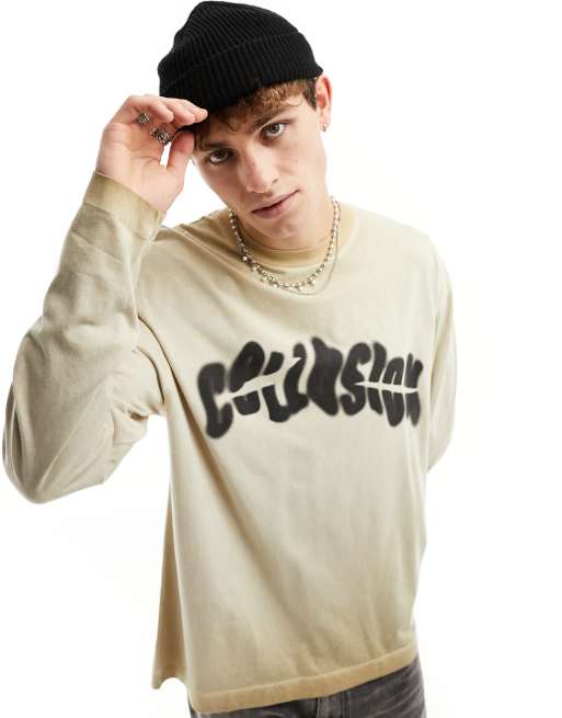 Mens ASOS x Collusion Hoodie Sweatshirt M Beige Heavyweight