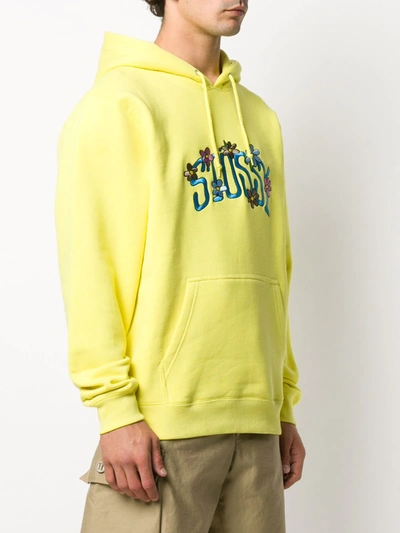Stussy Floral Logo Print Hoodie In Yellow ModeSens