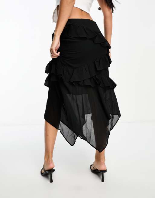 Glamorous Jupe mi longue volant e en mousseline avec ourlet asym trique Noir