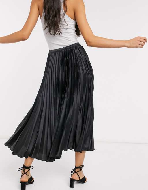 Jupe plissée outlet noire longue, ASOS DESIGN Jupe mi longue pliss e en satin Noir ASOS outlet