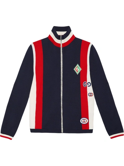 Logo appliqu d Striped Wool Zip up Sweater In Blue